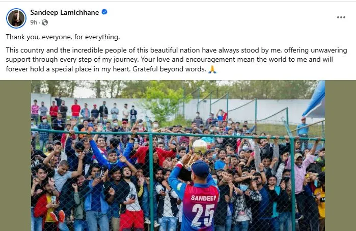 नेपाली क्रिकेटर सन्दीप लामिछानेले सन्यास लिने संकेत गरेका छन् । नेपाली क्रिकेट टिमका लेग स्पिनर समेत रहेका लामिछानेले सामाजिक सञ्जालमा राखेको एक भावुक पोस्टपछि फ्यानहरू त्यस्तो अड्कल गरिरहेका छन्।
